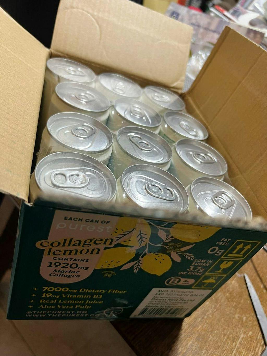 Full Ingredient List:Water, Aloe Vera Juice with Pulp, Lemon Juice, Sugar, Soluble Corn Fiber, Marine Collagen Peptides, Lemon Flavor, Sodium Citrate, Citric Acid, Ascorbic Acid, Vitamin B3, Colors (E150d, E160a)