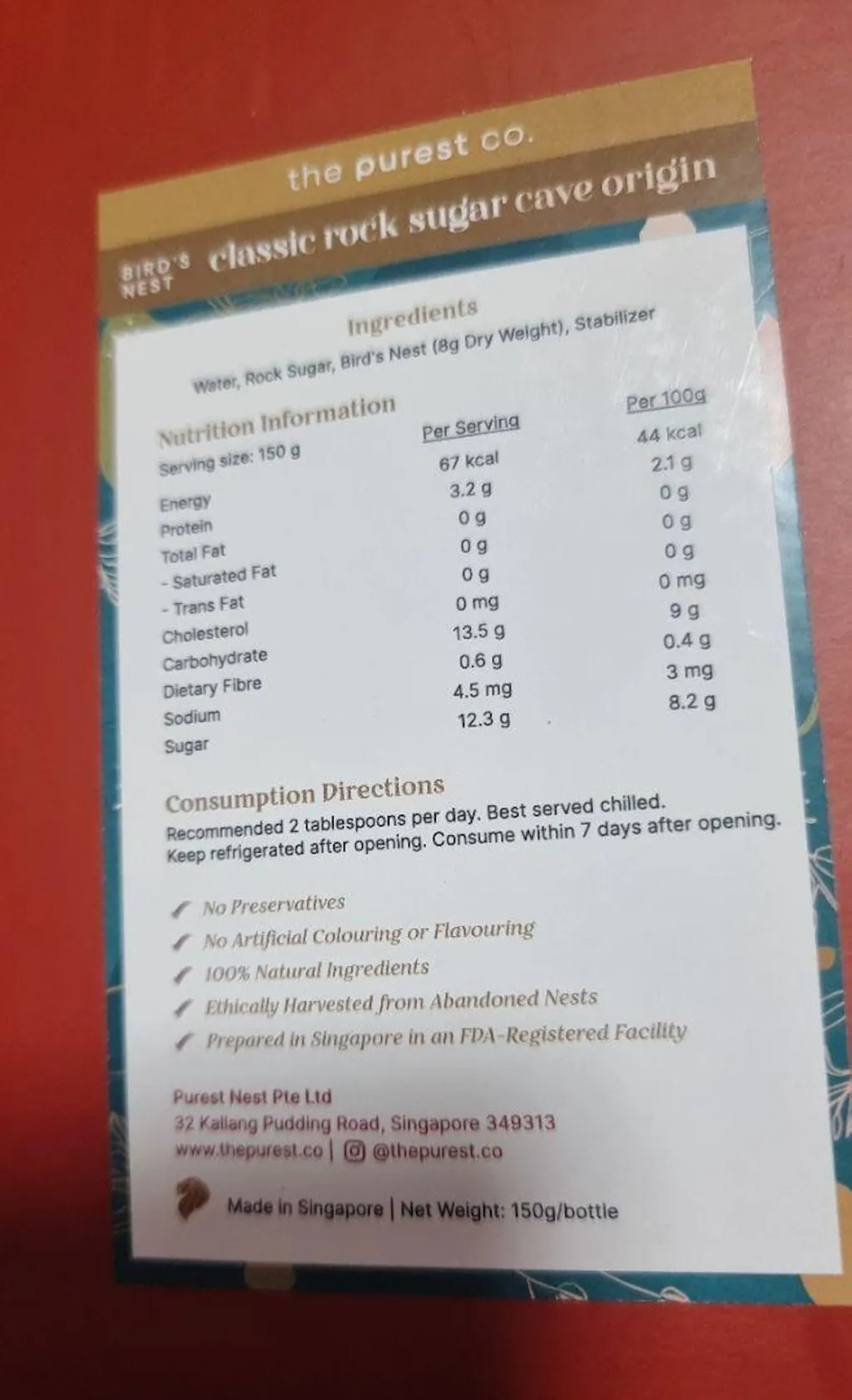 • 8g Premium Bird’s Nest (dry weight)
